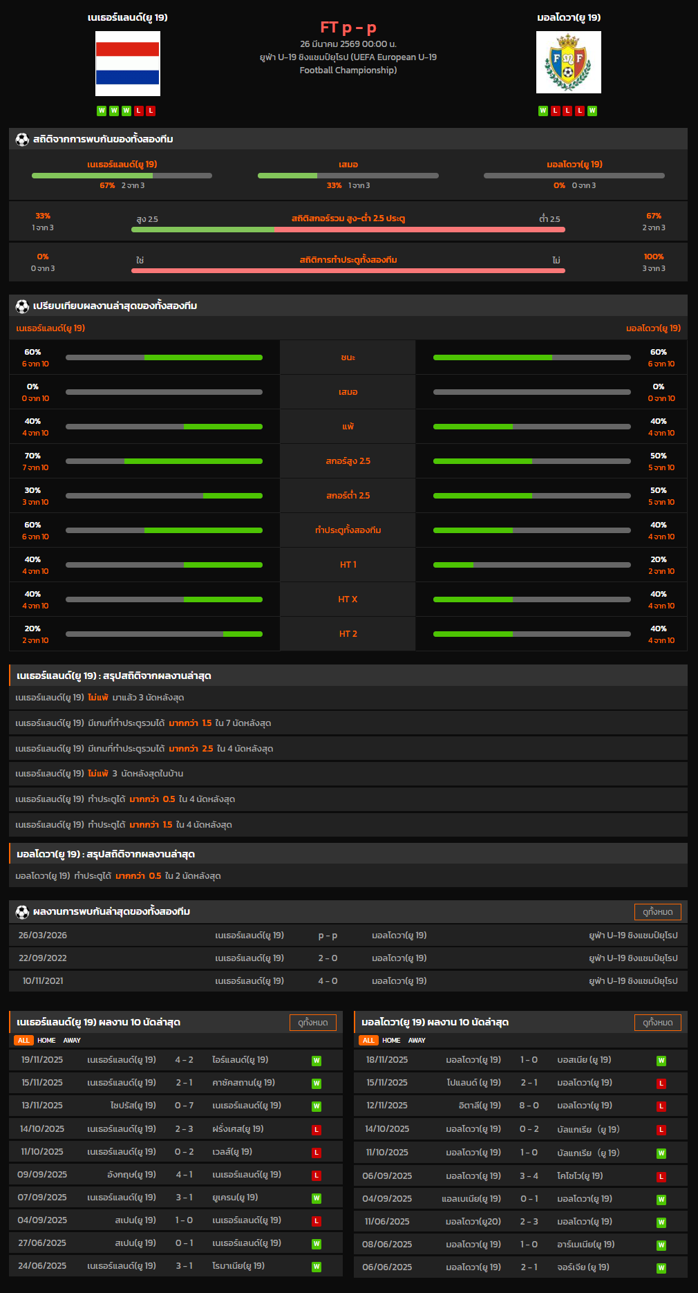 วิเคราะห์บอล ชิงแชมป์แห่งชาติยุโรป U-19 2026 เนเธอร์แลนด์(ยู 19) VS มอลโดวา(ยู 19)
