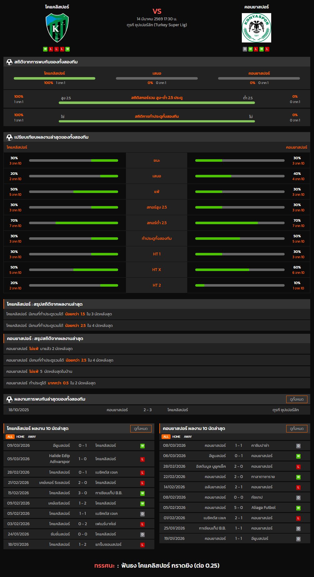 วิเคราะห์บอล ตุรกี ซุปเปอร์ลีก 2025-26 โคแคลิสปอร์ VS คอนยาสปอร์