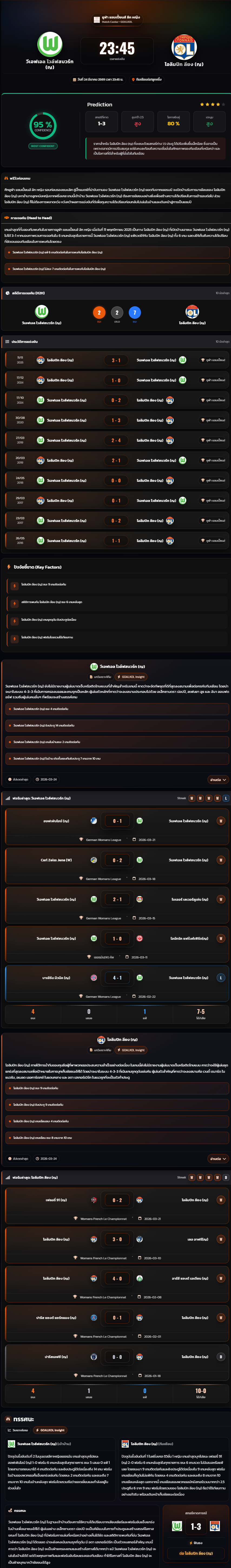 วิเคราะห์บอล ยูฟ่า แชมเปี้ยนส์ ลีก หญิง 2025-26 วีเอฟเอล โวล์ฟสบวร์ก (ญ) vs โอลิมปิก ลียง (ญ)