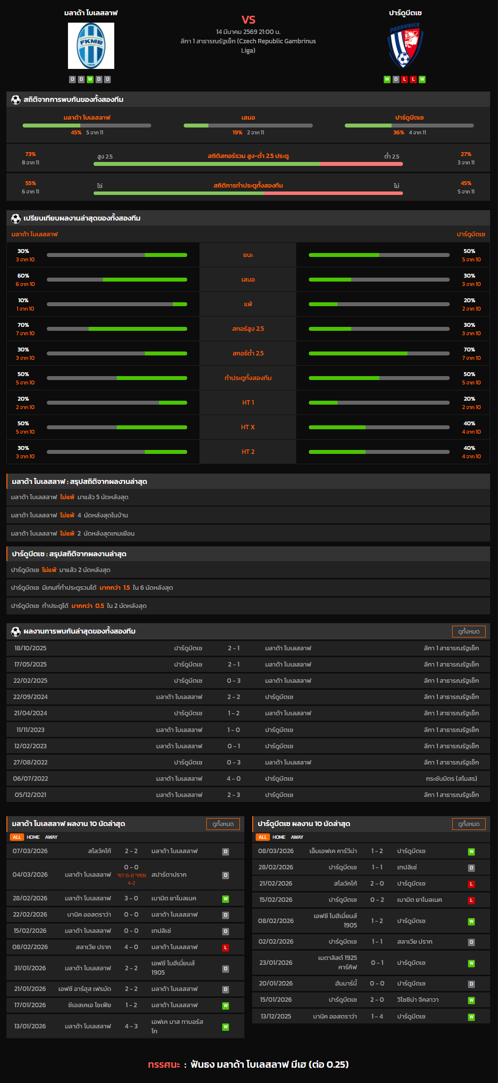 วิเคราะห์บอล ลีกา 1 สาธารณรัฐเช็ก 2025-26 มลาด้า โบเลสลาฟ VS ปาร์ดูบีตเซ