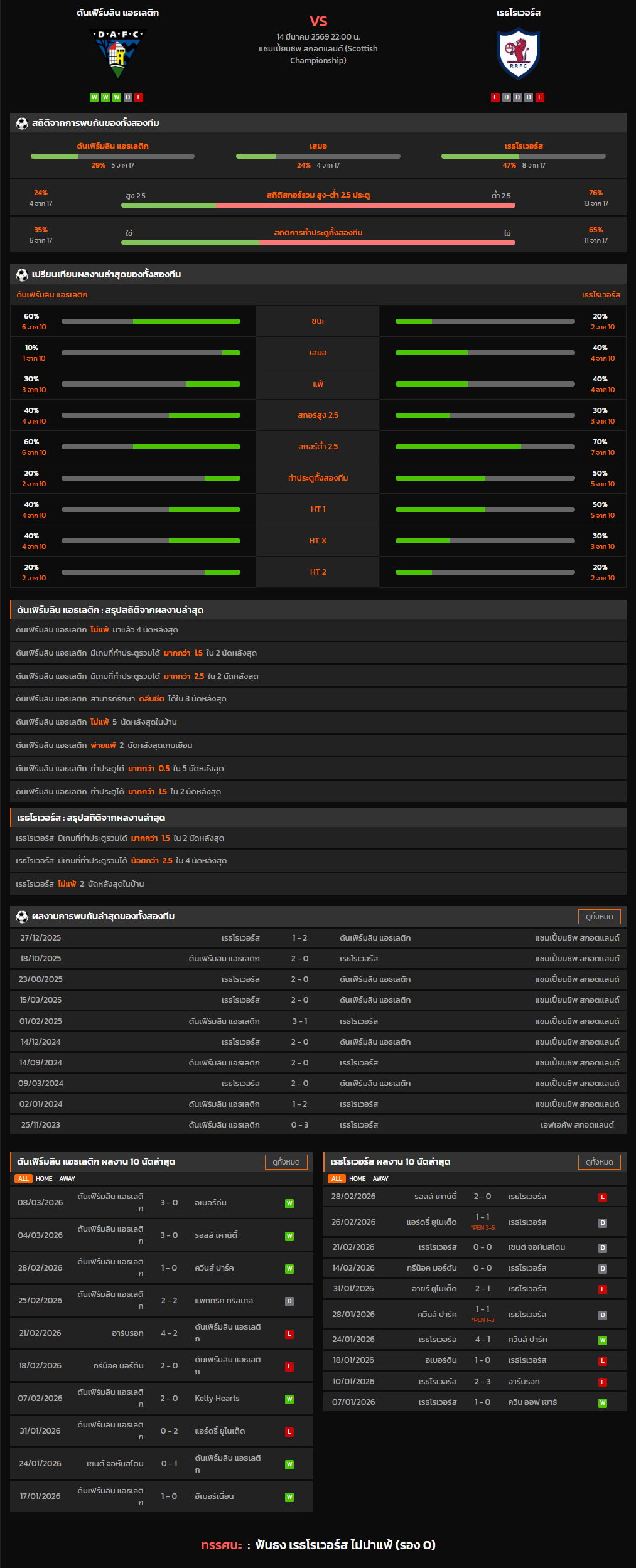 วิเคราะห์บอล สกอตแลนด์ แชมเปี้ยนชิพ 2025-26 ดันเฟิร์มลิน แอธเลติก VS เรธโรเวอร์ส