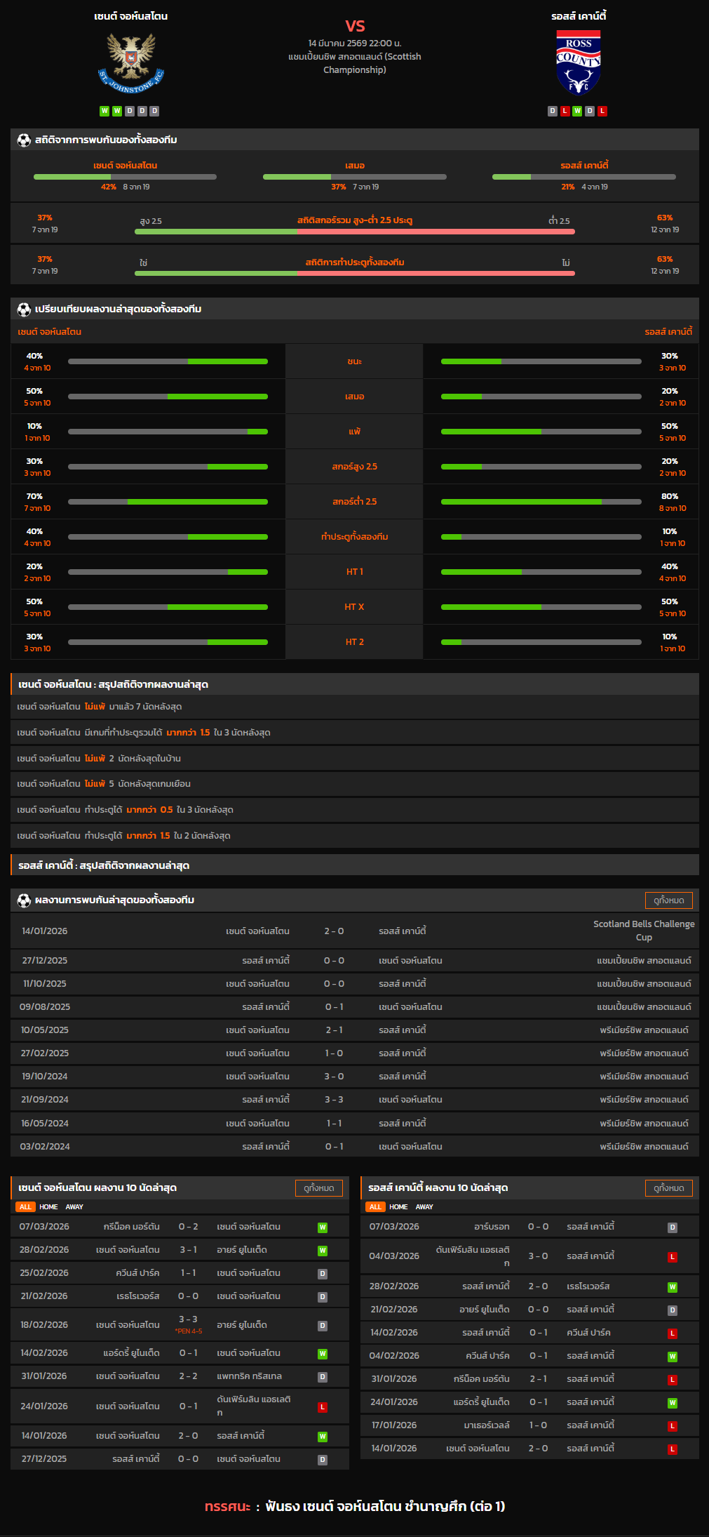 วิเคราะห์บอล สกอตแลนด์ แชมเปี้ยนชิพ 2025-26 เซนต์ จอห์นสโตน VS รอสส์ เคาน์ตี้