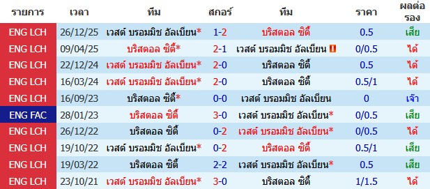 บริสตอล ซิตี้ VS เวสต์บรอมวิช