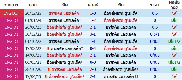 ราคาบอล : อ็อกซ์ฟอร์ด ยูไนเต็ด ต่อ 0/0.5