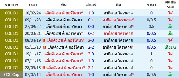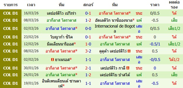 ผลงาน 10 นัดหลังสุดของทีม อากีลาส โดราดาส