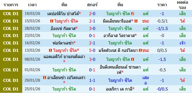 ผลงาน 10 นัดหลังสุดของทีม โบญาก้า ซิโค